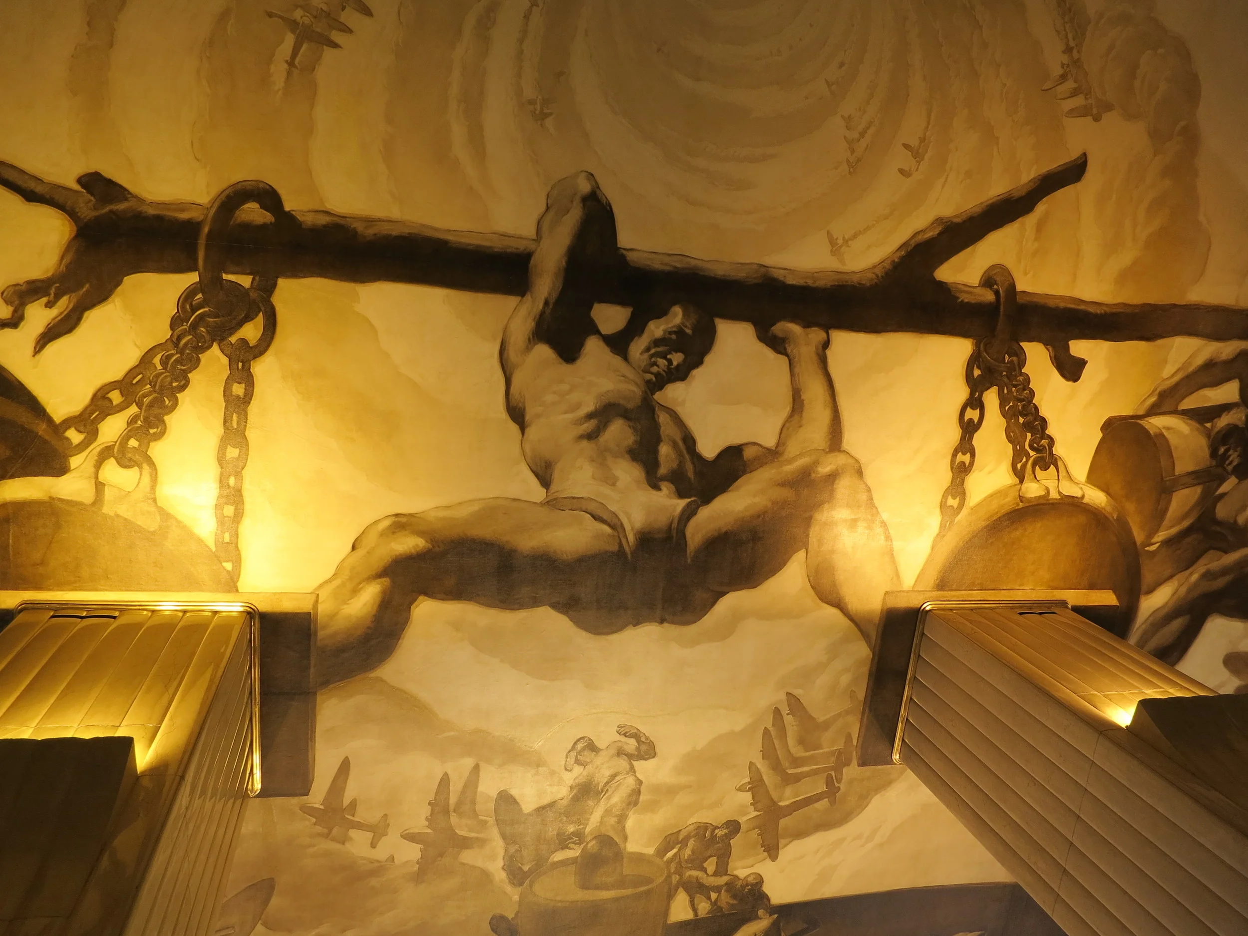 The San Telmo Museum deliberately disrupts a traditional, linear reading of history. The museum comprises of 16th, 19th, 20th and 21st century structures; the fissures between additions have been left patently obvious - begging theoretical exploration. Within the space of the Gothic church, Josep Maria Sert y Badia's monumental, smokey golden murals still cling to the walls. Painted in a neo-Baroque, 17th-century manner, they hang below restored, 16th-century murals - disrupting a normative perception of the sedimentation of time. To my delight, the San Telmo Museum has recently funded an intensive restorative project for the murals.. The conservation efforts can be viewed via a wonderful short video produced by the museum, entitled "Anatomia de Sert."